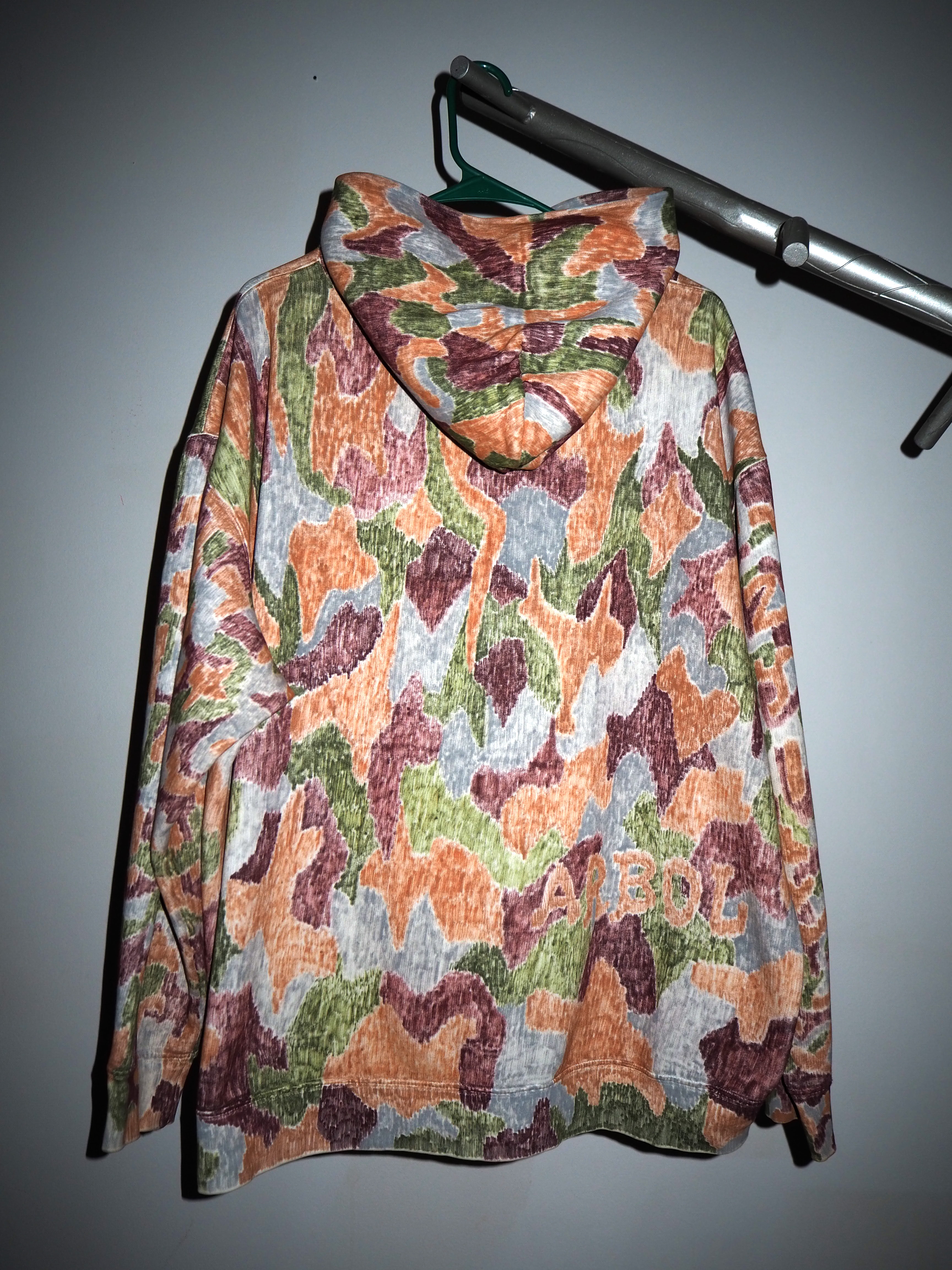 Made using Posca paint markers. This hoodie used to be white, and now it is not. I spent many mornings drinking coffee and coloring this. There are a few hidden symbols throughout like a peace sign, a dino nugget, and the shape of Texas. Also ARBOL spelled out on the back. This fits a size X-Large.